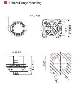- Тип исполнения: фланцевый разъём (панельный монтаж).