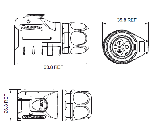 - Тип разъёма: панельный (J‑серия), с фиксирующей гайкой.