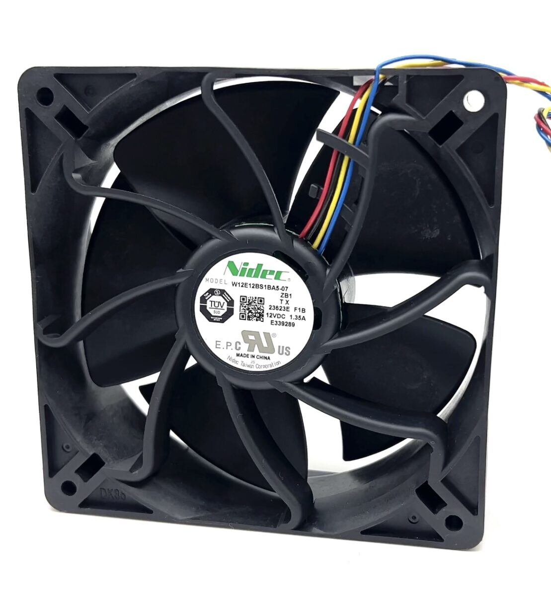 Nidec UltraFlo W12E12BS1BA5-07 (120×120×38, 12V, 1.35A, 6000 rpm, 4‑pin) —