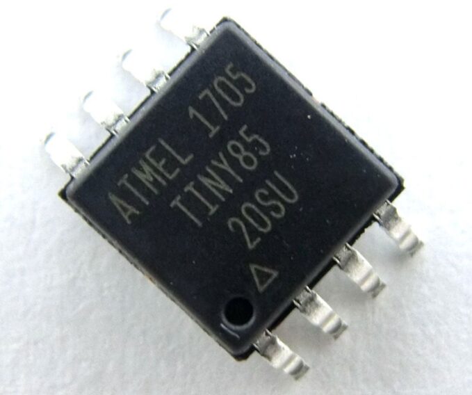ATTINY85-20SU — это высокопроизводительный, маломощный 8-разрядный микроконтроллер на базе AVR RISC, сочетающий в себе 512B EEPROM, 6 линий ввода/вывода общего назначения, 32 рабочих регистра общего назначения, один 8-битный таймер/счетчик с режимами сравнения, один 8-разрядный высокоскоростной таймер/счетчик, USI, внутренние и внешние прерывания, 4-канальный 10-битный аналого-цифровой преобразователь, программируемый сторожевой таймер с внутренним осциллятором, три программно выбираемых режима энергосбережения и debugWIRE для встроенной отладки. Устройство достигает пропускной способности 20 MIPS на частоте 20 МГц и работает в диапазоне от 2,7 до 5,5 В. Выполняя мощные инструкции за один тактовый цикл, устройство достигает пропускной способности, приближающейся к 1 MIPS на МГц, балансируя энергопотребление и скорость обработки.