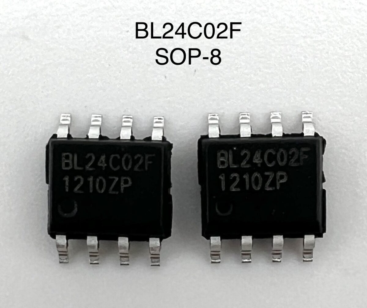 BL24C02F (SOP-8) — серийная энергонезависимая память EEPROM объёмом 2 Кбит (256×8) с интерфейсом I²C. Чип поддерживает скорости до 1 МГц, имеет аппаратную защиту от записи (WP) и входы с триггером Шмитта для помехоустойчивости. Оптимален для хранения калибровок, серийных номеров, таблиц конфигурации в платах майнингового оборудования и серверной электронике.