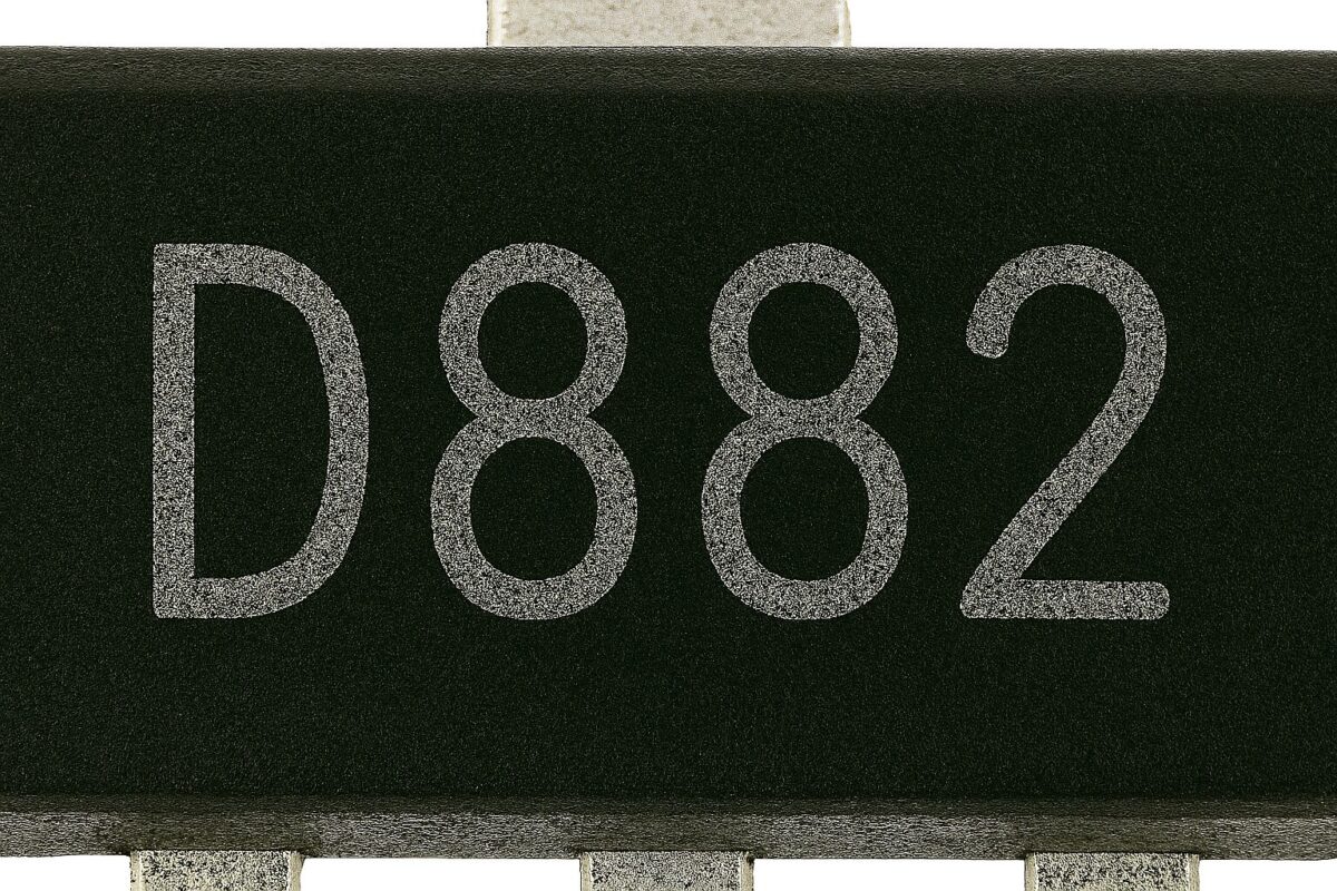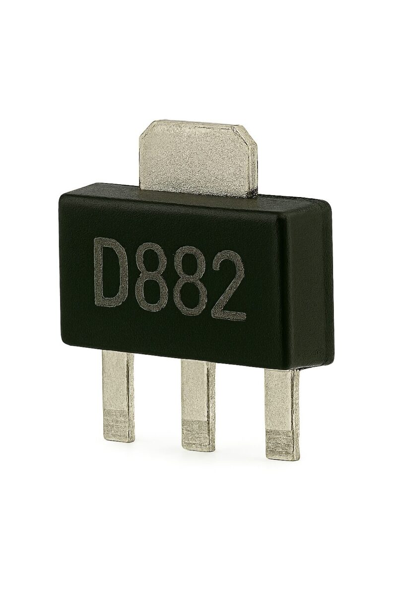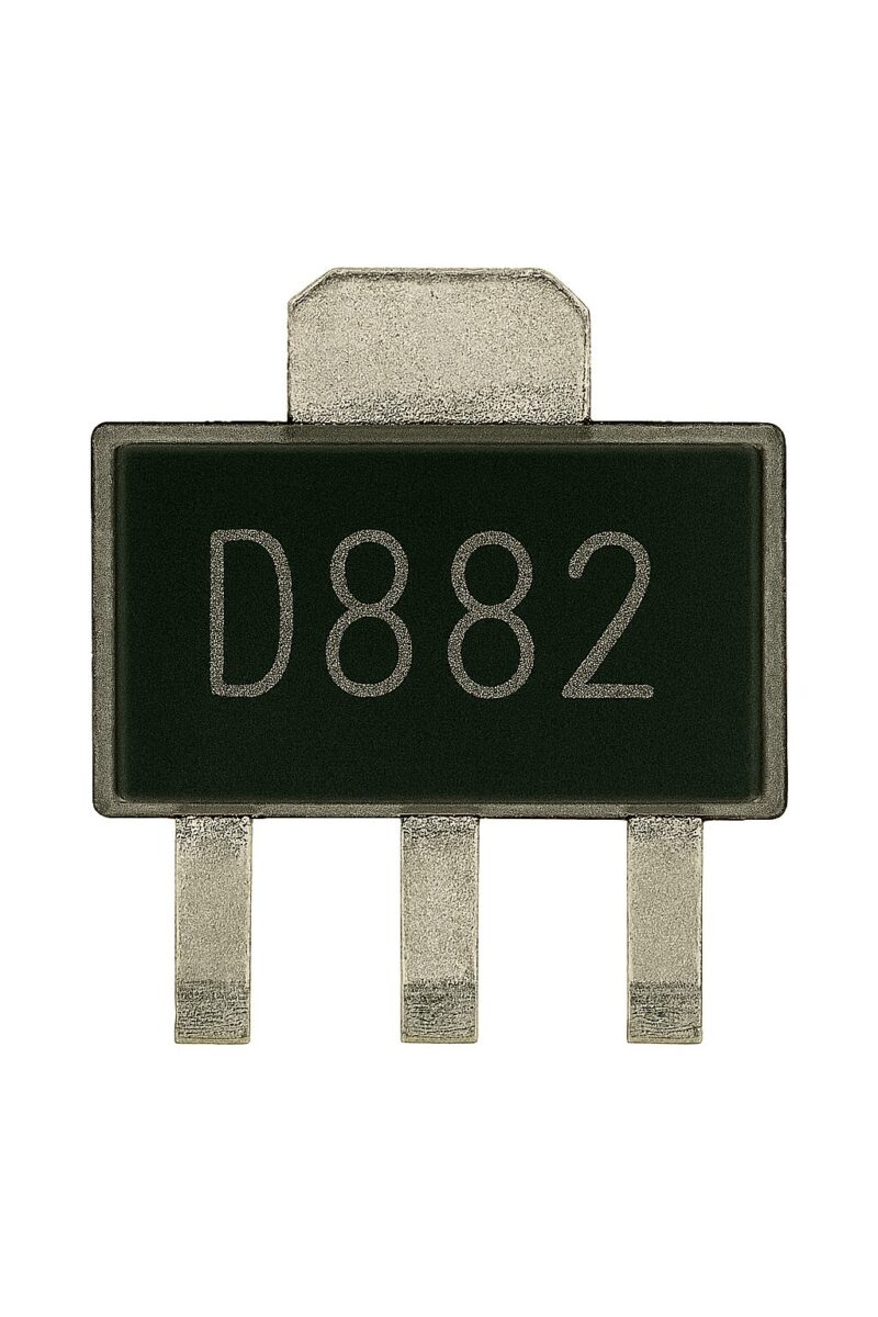 Транзистор 2SD882 (SOT-89) – компактный NPN биполярный транзистор среднего тока в корпусе SOT-89 для коммутации нагрузок и силовых узлов малой мощности. Подходит для ремонта и сборки плат майнеров, серверных БП и периферии: драйверы вентиляторов, управление реле, DC-DC предварительные каскады и линейные стабилизаторы. Малое тепловое сопротивление корпуса SOT-89 и достойный коэффициент усиления по току позволяют получить стабильную работу при непрерывной нагрузке.