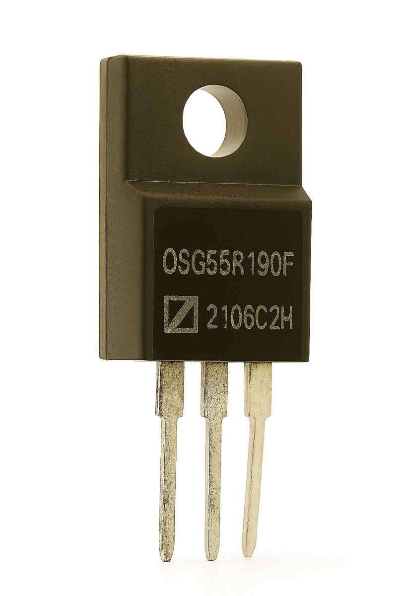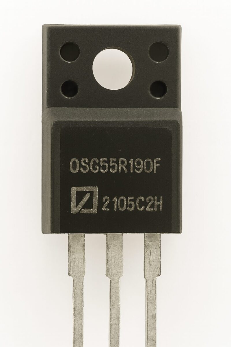 OSG55R190F — это высоковольтный N-канальный MOSFET транзистор в корпусе TO-220F, предназначенный для применения в силовых цепях майнингового оборудования. Благодаря низкому сопротивлению открытого канала и высокой скорости переключения, он обеспечивает эффективную работу в блоках питания, инверторах и преобразователях, где важна надёжность и тепловая стабильность.