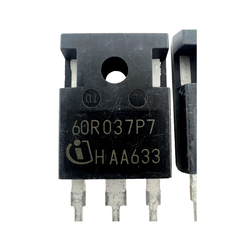 60R037P7 — это высокоэффективный N-канальный MOSFET-транзистор, предназначенный для работы в силовых цепях, инверторах, преобразователях и блоках питания. Выполнен в корпусе TO-247, обеспечивающем надёжный тепловой отвод и устойчивость к высоким токам и напряжениям.