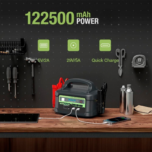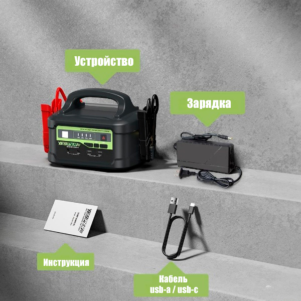 Портативный аккумулятор Yesper Monster X2 – это мощное и надежное устройство, созданное для обеспечения бесперебойного питания ваших устройств в любых условиях. Этот аккумулятор идеально подходит для путешествий, кемпинга и других активностей на открытом воздухе, где доступ к электричеству ограничен. Благодаря высокой емкости и множеству портов для зарядки, Yesper Monster X1 способен одновременно заряжать несколько устройств, включая ноутбуки, смартфоны, планшеты и даже небольшие бытовые приборы.В комплекте идут стартовые провода для прикуривания автомобиля.